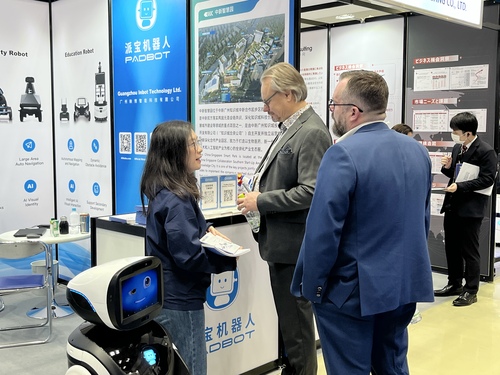 ■海外采购商咨询智慧园区方案 在展位现场的情景演示中,接入AI 大语言模型的迎宾导览机器人 X3,不仅能精准识别访客需求,提供多语种智能问询服务,还可实现跨楼层自主带路,全程无需人工干预;搭载先进 AI 视觉识别算法的室内巡逻机器人 S2,如同 24 小时在岗的 “智能卫士”,可实现 7×24 小时不间断跨楼层巡逻,对异常情况进行分级预警与实时上报。机器人灵活避障、高效协同作业的场景,引发了现场观众的广泛围观与打卡分享。 “我们所有的机器人均可实现云端集中管控。” 派宝机器人现场负责人介绍,通过自主研发的云端平台,所有设备可实现集中管控与智能调度,形成 “感知 - 决策 - 执行” 的智慧服务闭环,能够从多维度提升园区运营效率和事故响应速度,进而实现降本增效。 l 双向赋能筑出海新生态 此次联合参展并非单一产品出海,而是整套智慧生态的系统化输出。合作中,中新智慧园凭借现代化产业资源,为派宝机器人提供了重要的产品场景验证平台;派宝机器人则以技术赋能,助力中新智慧园打造“智慧园区示范样板”,为园区企业提供全方位智慧无人化服务,最终形成 “技术研发 - 场景验证” 的良性循环。